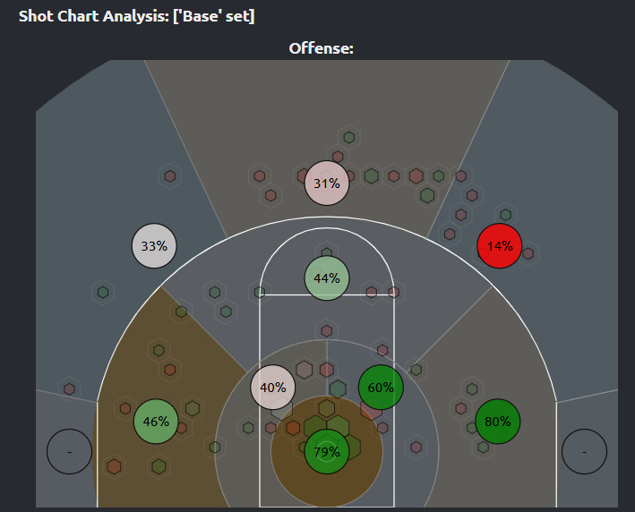 The long pivot on his jab in the second play is where he get to his signature move. He’s selling the drive while elevating quickly for his jumper. That’s skill. And if it’s not broke, don’t fix it. He continues to fall back to that midrange shot, showing good efficiency so far this season. The other side of the coin is that from three, he’s taking a bit too much time to set his feet. The third play shows an example of him correcting his feet a second after he caught the pass above the break, leading to the blocked shot. He needs to get more comfortable and more consistent with the speed of preparing his shot. The midrange comfort shows feasibility. But we need a higher volume from three as he’s been under two threes per game for back-to-back-to-back years now.